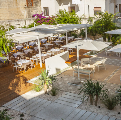 Palazzo De Giorgi, ex residenza nobiliare e sede istituzionale, ospita i principali servizi – la reception e il ristorante – e alcune delle nostre più belle camere, tra le quali le deluxe con balcone.