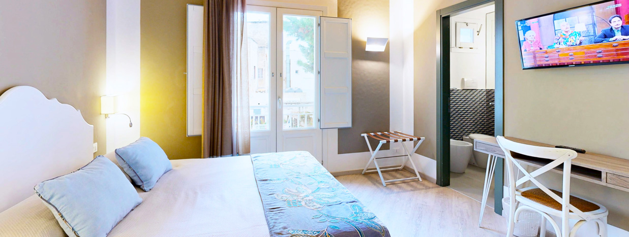 Palazzo tipico favignanese, che si sviluppa in altezza, dove abbiamo realizzato camere con balcone o con terrazza, alcune anche con vista mare panoramica.